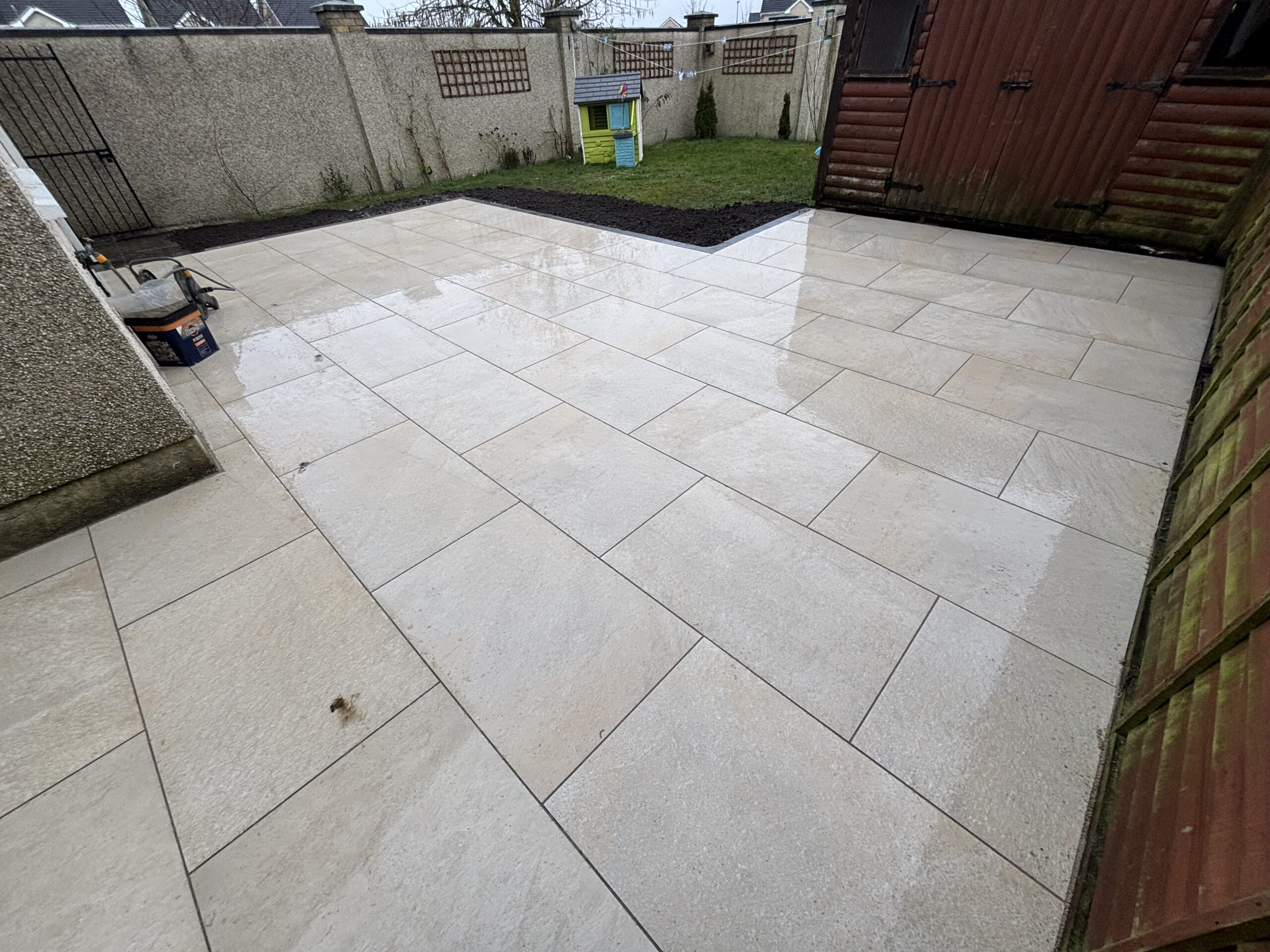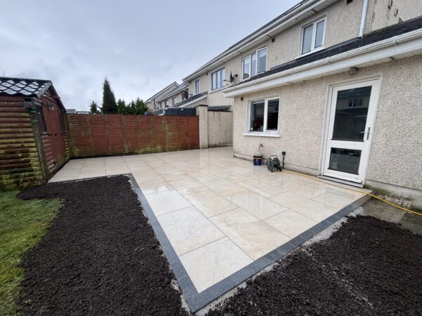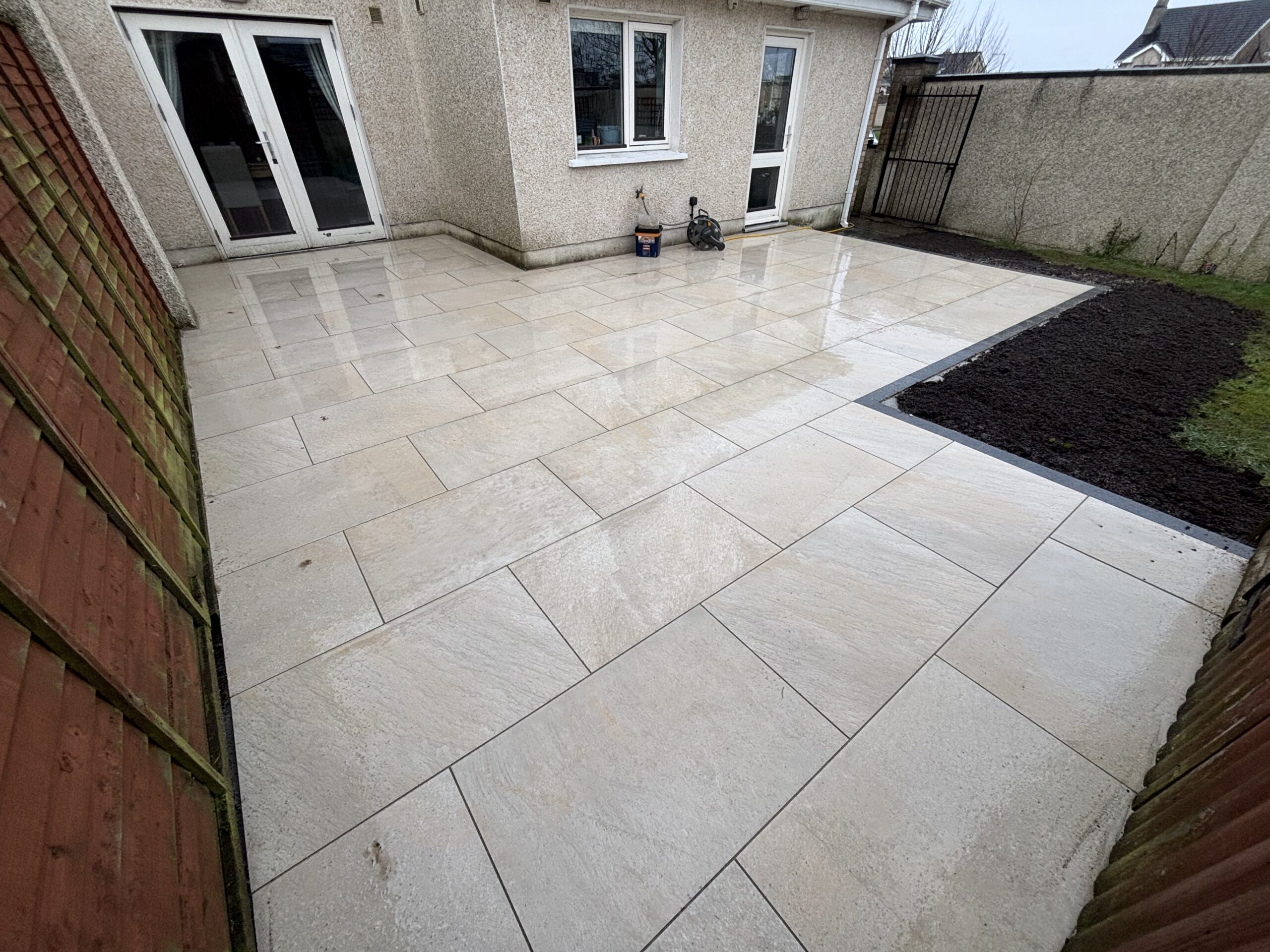 Dug out and removed the area, Supplied and installed 804 stone base, Laid porcelain tiling New step(s)Porcelain patio installation completed in Monasterevin, County Kildare from our patio specialists. Book your own free estimate by calling us on (01) 5768874.